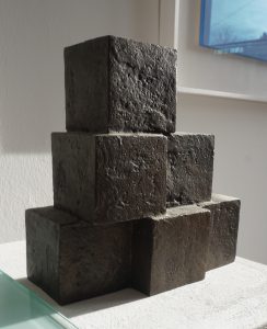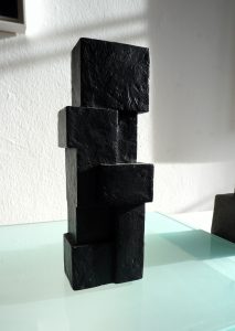 Hans Steinbrenner,1928 – 2008, gehört zu den Nachgeborenen, die sich der Ambivalenz von Skulptur und Malerei gestellt haben. Bildtafeln und Acrylbilder aus verschiedenen Jahrzehnten geben Einblick in sein malerisches Können. Der Gedanke des „Flächenraumes“, in dem sich die Dreidimensionalität unter Verzicht auf die Perspektive mit Hilfe von Hell- und Dunkelwerten ausdrückt, bestimmt sein Schaffen im malerischen und bildhauerischen Oeuvre. Er vermeidet die dramatische Geste und sucht die Konzentration in der Stille und Balance der reduzierten Form. Seine Malerei ist nach Aussagen des Künstlers schon im Jahr 1967 „die farbige Gestaltung und Inszenierung der Fläche, Bildhauerei die raumkörperhafte Gestaltung des Blocks“.