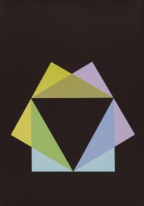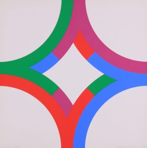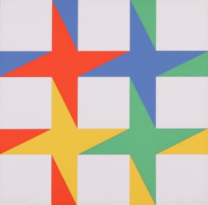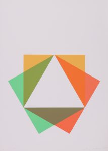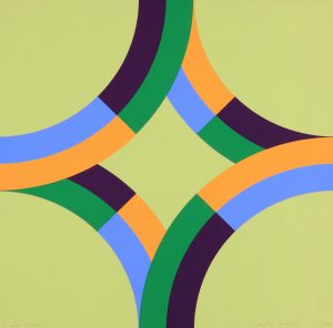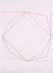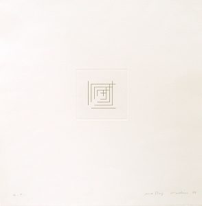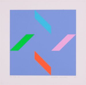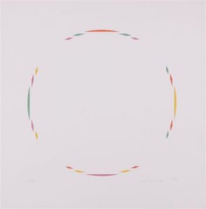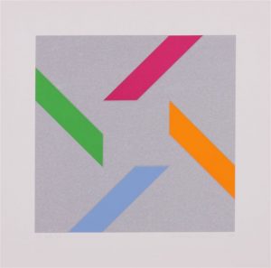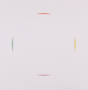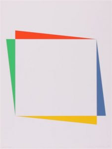 „Transparenz, Klarheit des Denkens, Sparsamkeit der gestalterischen Mittel, Erfindungsgeist, Spielfreude – und Stille“, so charakterisiert Ernst Halter mit präzisen Begriffen den langen Weg der künstlerischen Entwicklung von Nelly Rudin ( 1928 – 2013 ) Sie gilt heute als eine der Hauptvertreterinnen der konkreten Kunst in der Schweiz .Schon ihre frühen Bildgestaltungen, basierend auf Quadrat und Kreis, gehen durch die gleichberechtigte strukturelle Anordnung der Farbe ins Weite bzw. in den Raum. Ab 1976 geschieht eine konsequente Veränderung weg von der ebenen Bildfläche und die Hinwendung zum Rahmen, der zum eigentlichen Bildträger wird. Der Fokus der Betrachtung bewegt sich zum Rand hin und darüber hinaus. Der pure Rahmen mit unterschiedlicher Tiefe – aber immer ohne Bespannung -wird somit dreidimensionales Objekt. Dabei wird die Farbgebung von der Innenseite des Rahmens über die Kanten auf dessen Außenseite weitergezogen. Zugleich wird das Quadrat in seiner gewohnten Sehweise gestört und übereck gestellt. Die Künstlerin fordert dazu auf, die Randzonen als einen Ort des eigentlichen künstlerischen Gestaltens zu betrachten, wo etwas Neues unmittelbar aus der Wand heraustritt. Der Innenraum, der durch den Rahmen definiert aber nicht ausgefüllt ist, weist nun Leere auf, die den Blick auf das bewusst Uneigentliche, auf die Ränder lenkt.